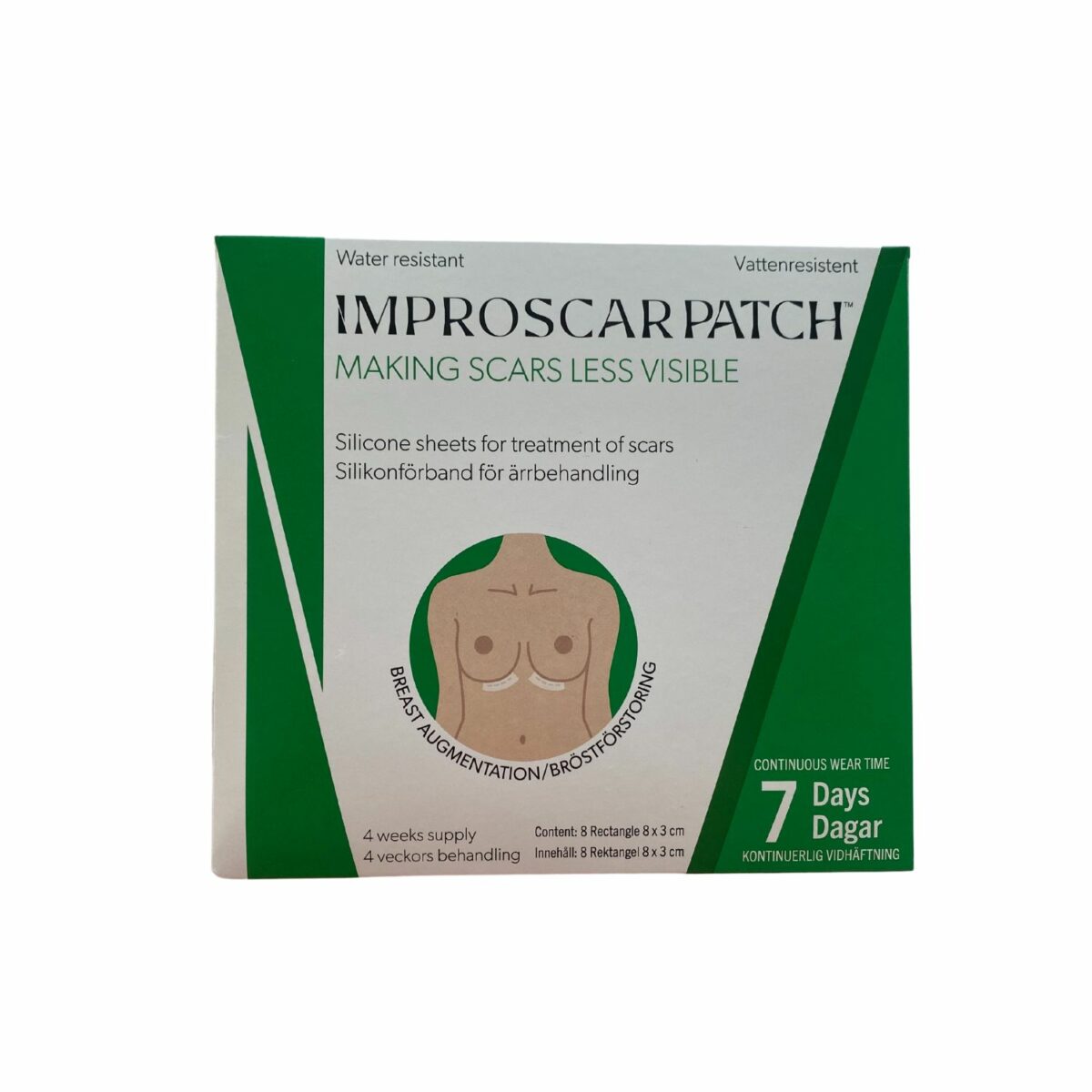 Improscar Patch – Mărire a sânilor este un plasture subțire, transparent, realizat din silicon medical, destinat tratamentului cicatricilor apărute în urma intervențiilor de augumentare mamară (implanturi mamare).